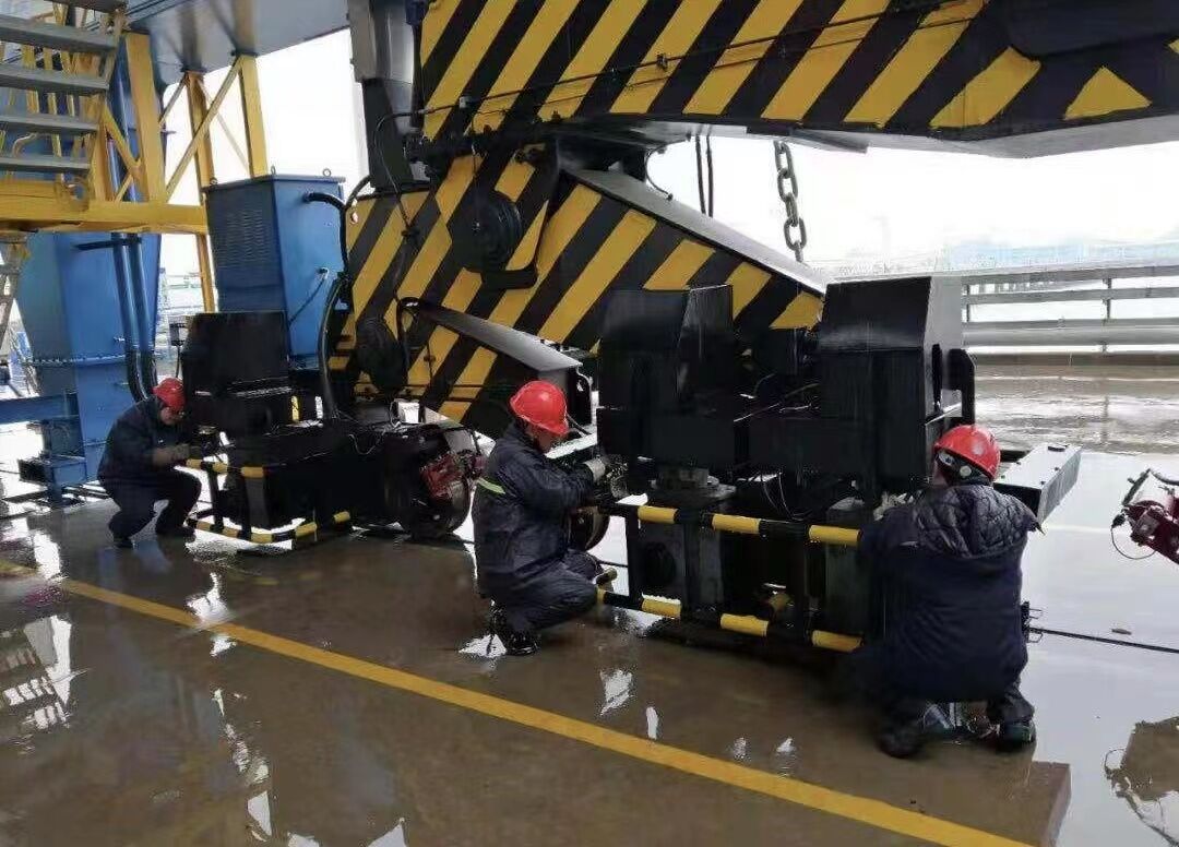按照“安全第一、預(yù)防為主”設(shè)備管理工作要求,公司根據(jù)年度設(shè)備維保計劃,結(jié)合碼頭生產(chǎn)、設(shè)備運行及日常點檢反饋實際情況,在加強設(shè)備重點部位全面“體檢”的基礎(chǔ)上,組織技術(shù)維修人員加班加點,攻堅克難,高質(zhì)量完成了卸船機主鋼絲繩及抓斗鋼絲繩更換、溜筒修補、清掃器更換調(diào)整、卸船機防爬鍥塊制作更換、滾筒和托 包裹油清理、托輥更換及支架螺栓緊固等維修項目,想方設(shè)法解決了卸船機電纜卷筒及裝船機、斗輪機通訊頻繁發(fā)生故障等問題。此外,公司安排維修人員24小時值班,確保第一時間趕赴設(shè)備故障現(xiàn)場,有效解決了日常制約設(shè)備安全運行的痛點、難點、堵點問題。
